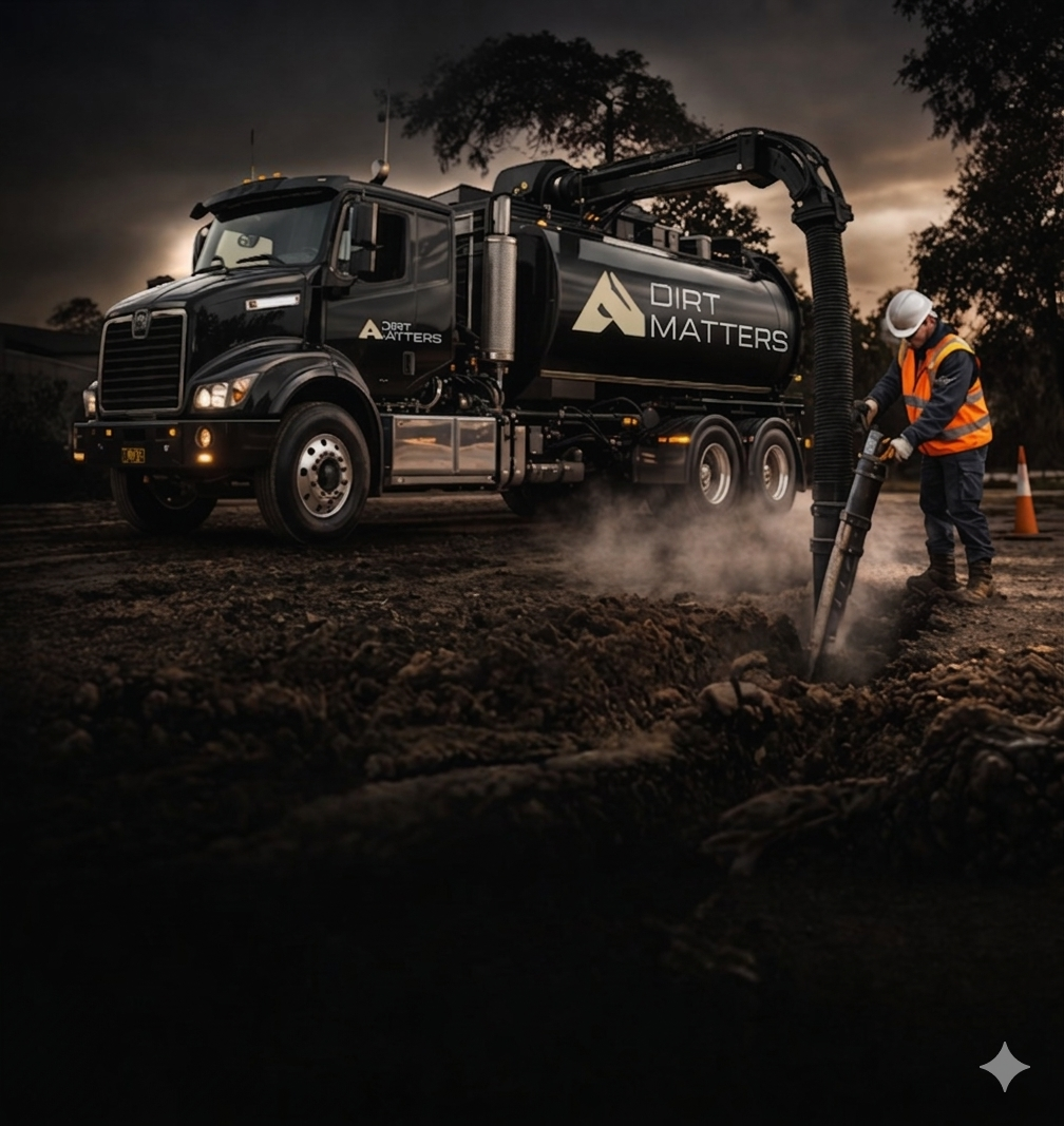 At DIRT Matters, we deliver safe, controlled and environmentally responsible excavation solutions across Sydney. Our approach focuses on minimising disruption while maintaining precision around critical infrastructure, allowing work to be carried out efficiently without compromising the surrounding environment or site conditions. By combining proven techniques with a highly skilled team, we remove soil and material cleanly and accurately, reducing risk on site and supporting safer project outcomes. This level of control is especially valuable in complex or high-risk environments, where protecting underground assets and maintaining site integrity is essential. Our fleet of high-performance vac trucks is built to handle projects of all sizes — from tight-access residential sites to large-scale civil works. Backed by experienced operators, we deliver reliable, efficient results that keep projects moving, reduce clean-up and support a smarter, more sustainable way to excavate.